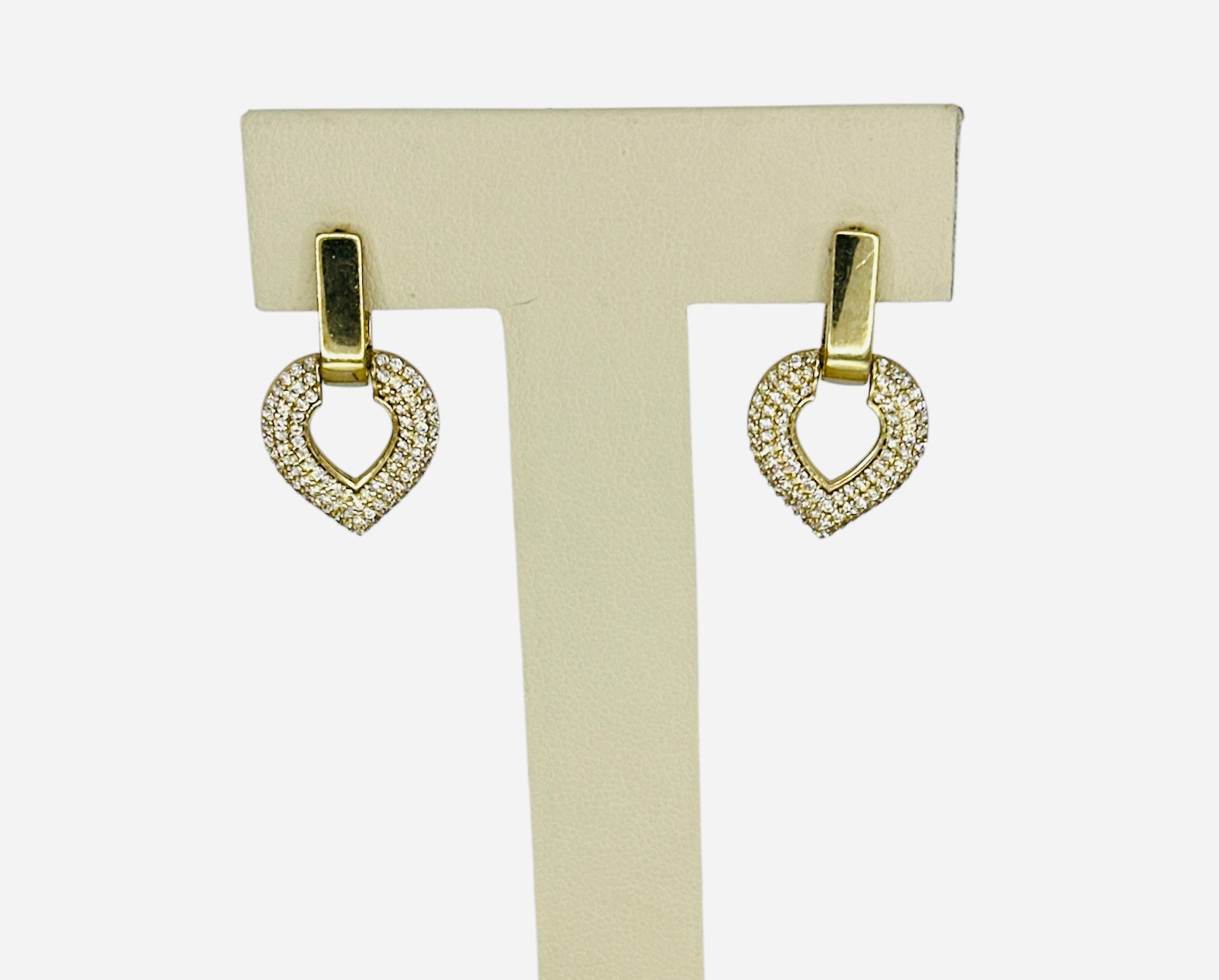 Argollas 14k forma de corazón con piedras blancas.