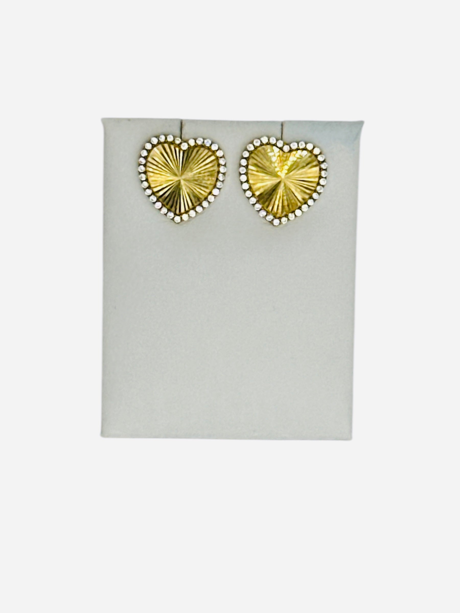 Pendiente de corazón con piedras blancas 10k 1.8g